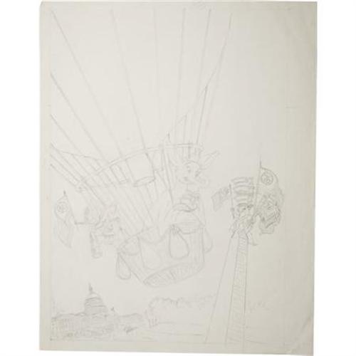 <B>Sheldon Mayer - Rudolph, the Red Nosed Reindeer Cover Preliminary Original Art (circa 1976).</B></I> Rudolph vacations in the nation's capital, perhaps to celebrate the USA's bicentennial. This pencil drawing has an image area of 13" x 18.5", and the art is in Excellent condition.<BR><BR><b>Shipping:</b> Flat Material, Small (<a target="_blank" href="http://www.heritageauctions.com/common/shipping.php">view shipping information</a>)