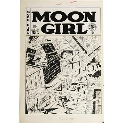 <B>Sheldon Moldoff - Moon Girl #6 Cover Original Art (EC, 1949).</B></I> Moon Girl's powers are taxed to their limits in this earth-shaking scene for the cover of "The Day the World Trembled." Sheldon Moldoff did a magnificent job on this EC thriller. This cover has an image area of 13.5" x 19", and the art is in Excellent condition.<BR><BR><b>Shipping:</b> Flat Material, Large (<a target="_blank" href="http://www.heritageauctions.com/common/shipping.php">view shipping information</a>)