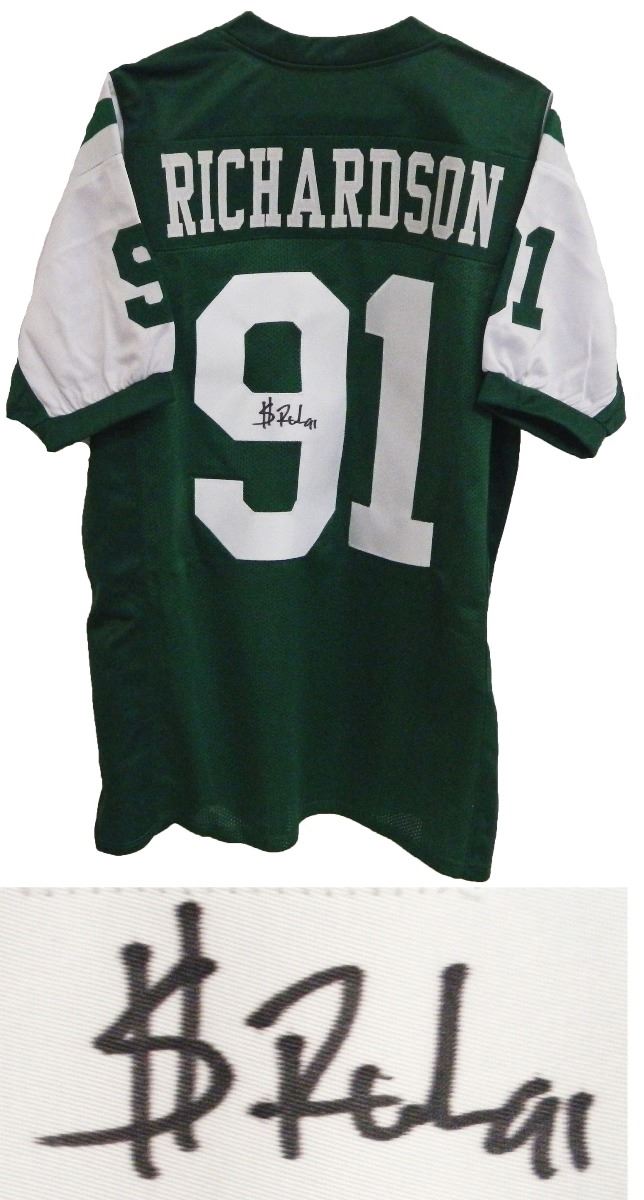 Sheldon Richardson signed green custom jersey. Jersey is size XL. Item comes with a Schwartz Sports Memorabilia tamper-proof numbered hologram and Certificate of Authenticity which can be verified online.
