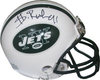 On July 25, 2013, Sheldon Richardson signed a four-year $10.05 million deal. He was named the starting defensive end in the 2013 season. During the month of November, Richardson won the NFL Rookie of the Month award. In a week 15 game against the Panthers, Richardson became the first NFL defensive lineman to score a rushing touchdown since B.J. Raji did so for the Green Bay Packers in 2011. He ran for his second career touchdown of the season in the Jets' week 17 finale against Miami. Richardson played 16 games in 2013 making 78 tackles, a pass defended, a forced fumble, 3.5 sacks, and 2 rushing touchdowns. On February 2, 2014, it was announced that Richardson had won the 2013 NFL Defensive Rookie of the Year award. Sheldon Richardson has hand signed this New York Jets Replica Mini Helmet. Schwartz Hologram and Certificate of Authenticity from Athlon Sports.