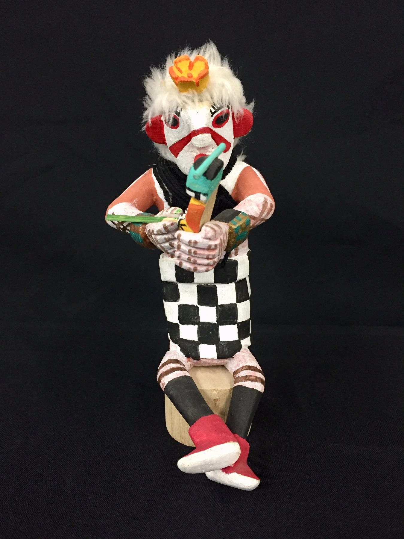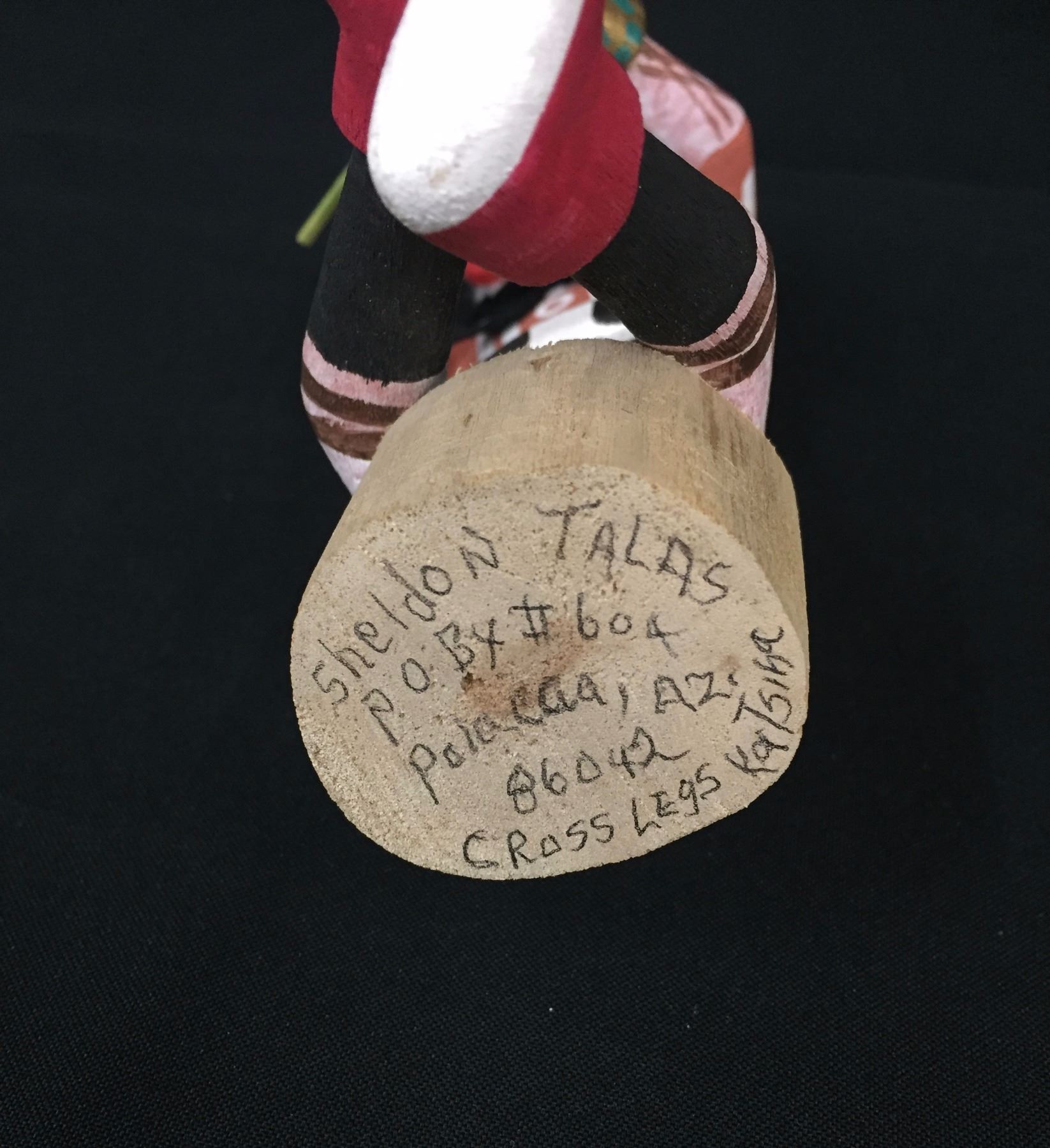Maker: Sheldon Talas (1937 - 2003), Hopi. Approx. Age: Fairly modern. Size: Measures 7 1/4” h. Additional Info: Hand carved and painted “Cross Legs katsina” kachina. Condition: Pretty good for it’s age, normal wear expected. Please look closely at the pictures - they are an important part of our description. Shipping: There will be a $7 handling / packaging fee for shipping this lot. The actual cost of postage will be added on top of that.