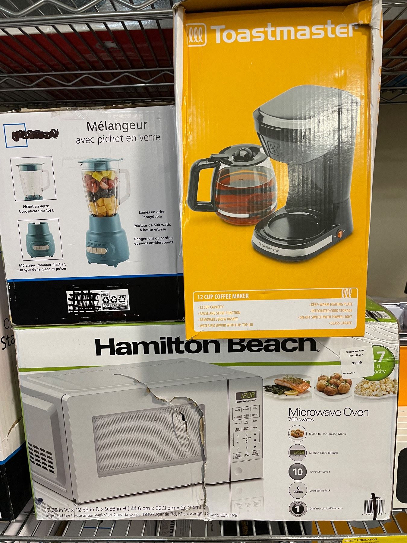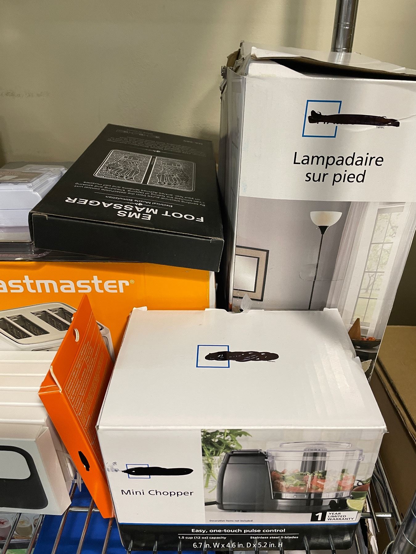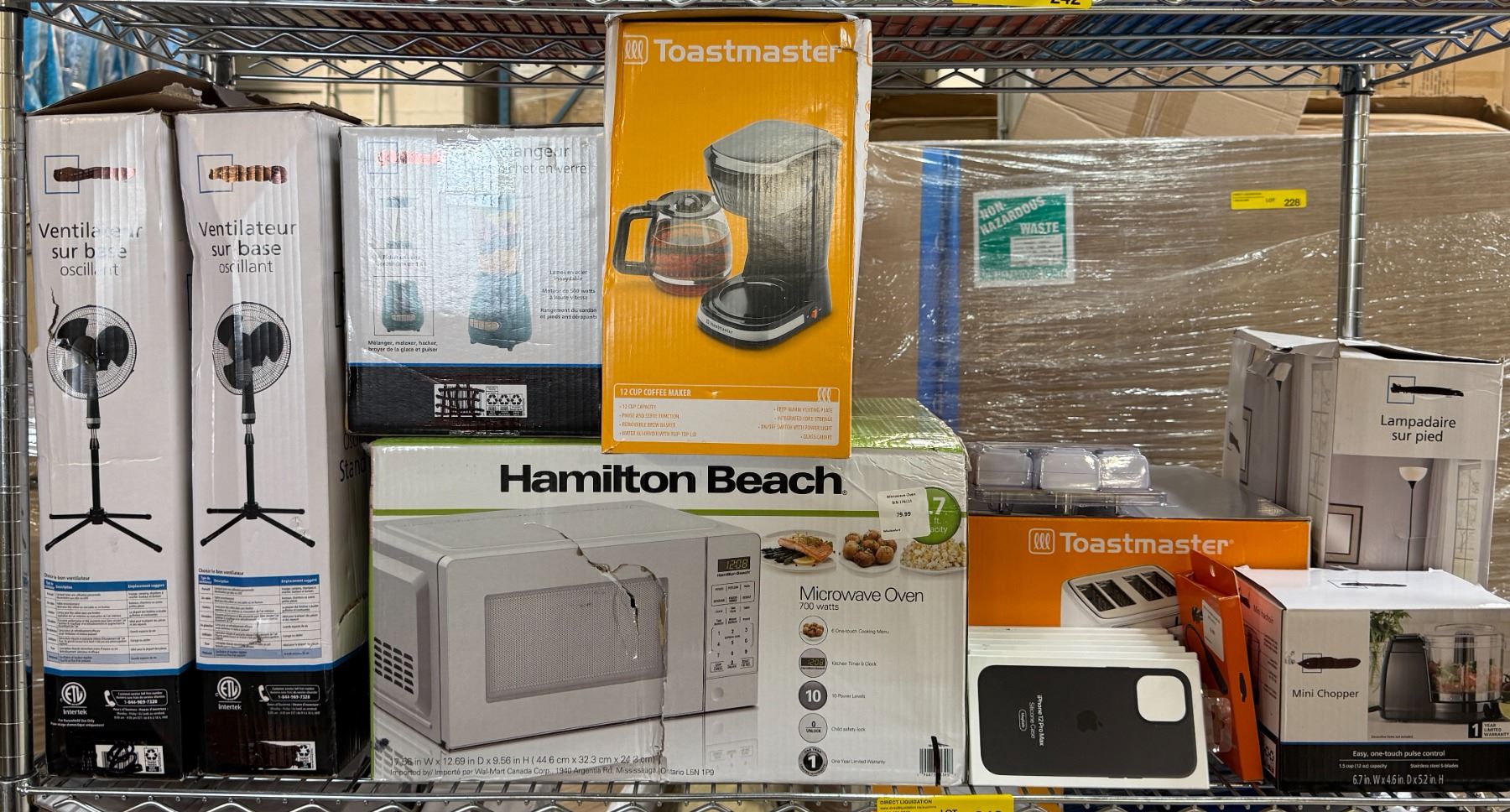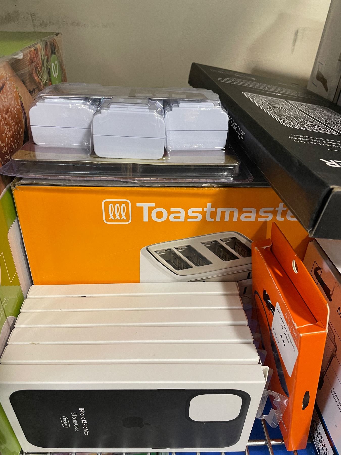 Shelf - Assorted Items - Includes Fans, iPhone 12 Max Cases, Microwave, Toaster, Food Processor, Et