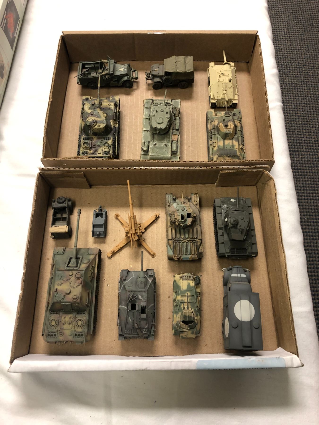 Lot of 14 Built 1/72 Scale Armour Models - tanks and military vehicles. Excellent craftsmanship.
