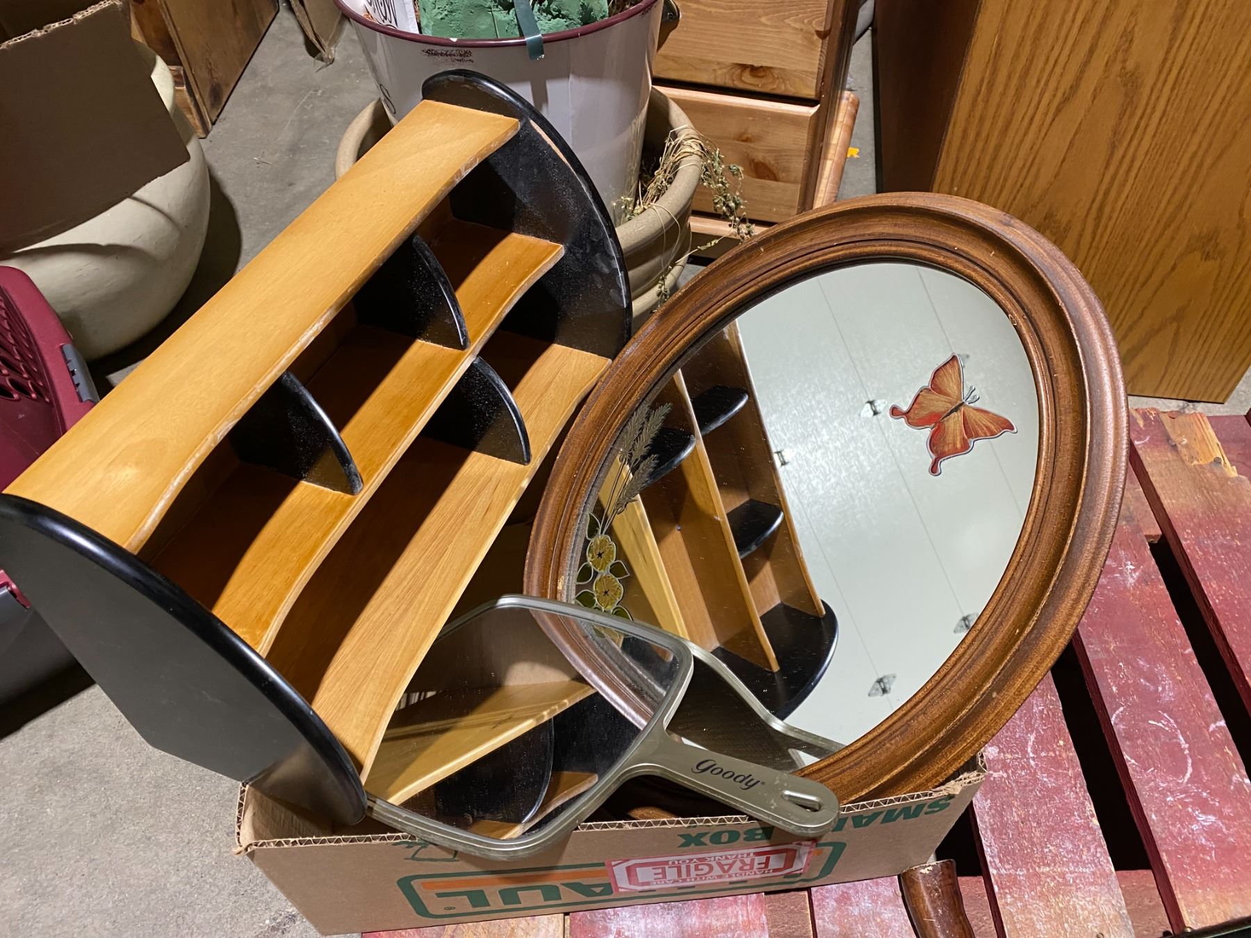 Shelf and mirrors