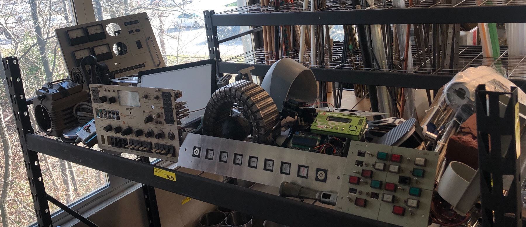Shelf lot full of miscellaneous items- includes parts/parts for props