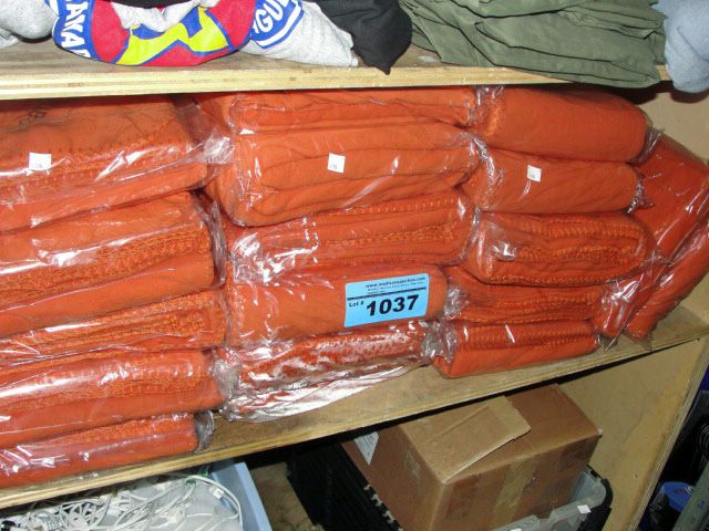 Shelf lot full of restuarant grade table clothes