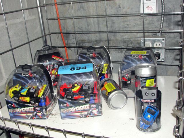 Shelf lot of 8 mini radio controlled race cars