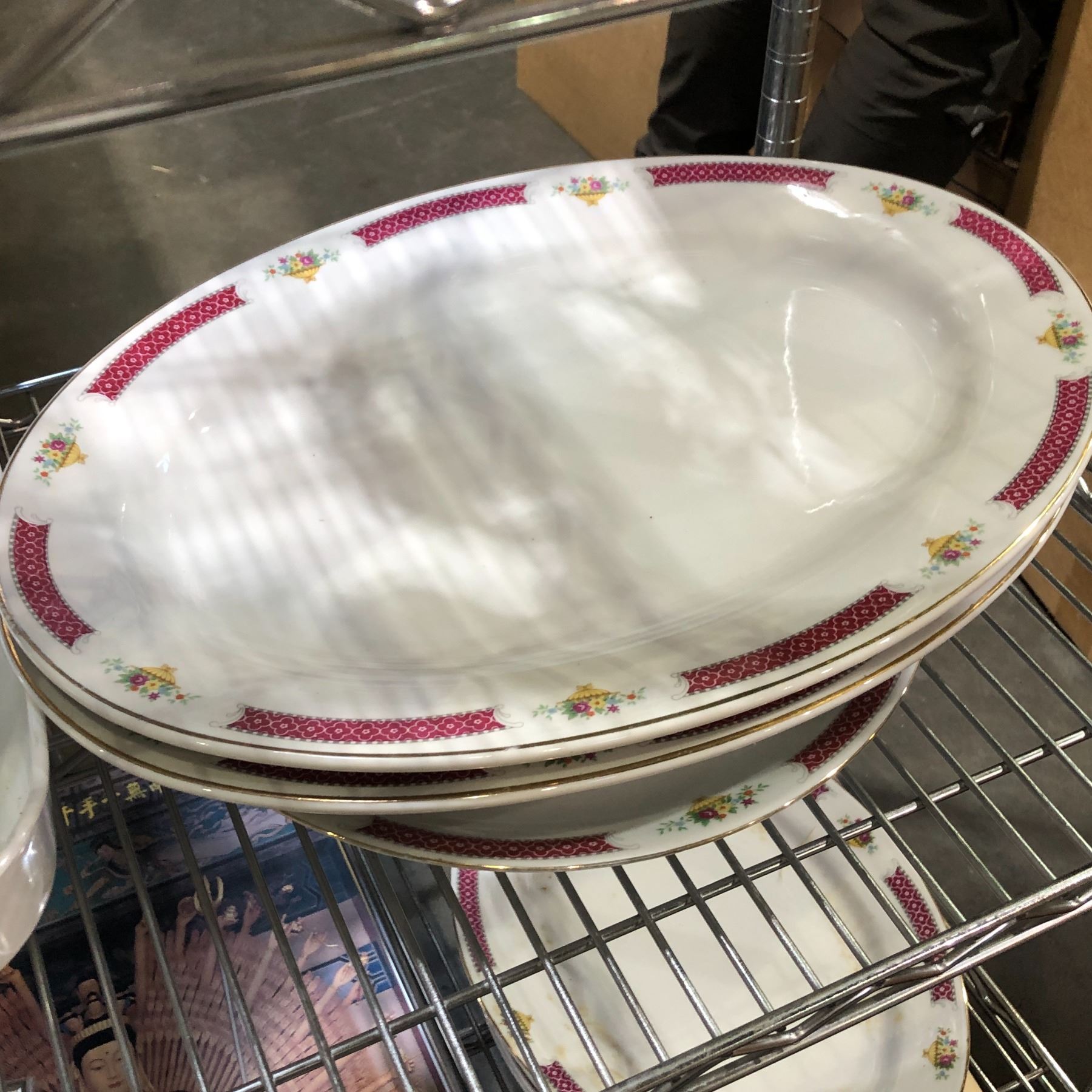 Shelf lot of assorted Chinese tableware