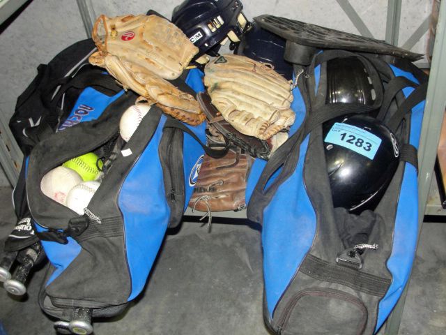 Shelf lot of assorted baseball gear