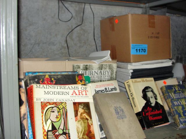 Shelf lot of assorted books and white paper