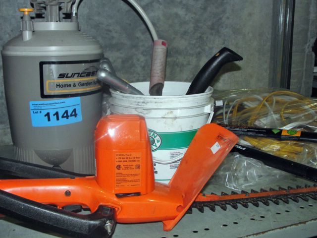 Shelf lot of assorted garden items