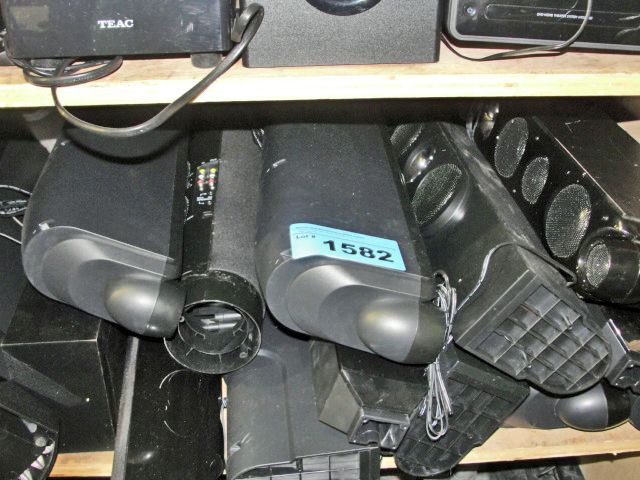 Shelf lot of assorted home electronic speakers