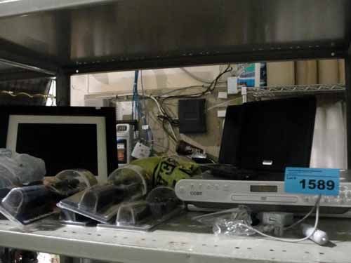 Shelf lot of assorted home electronics
