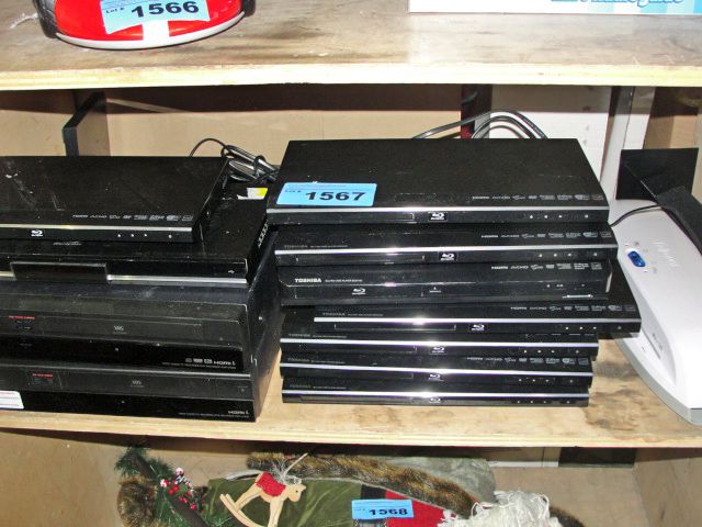 Shelf lot of assorted home electronics