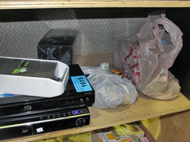Shelf lot of assorted home electronics
