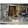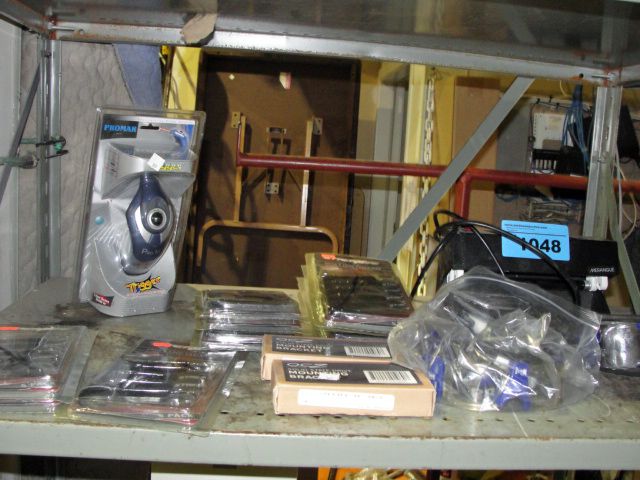 Shelf lot of assorted misc; new sports goggles,