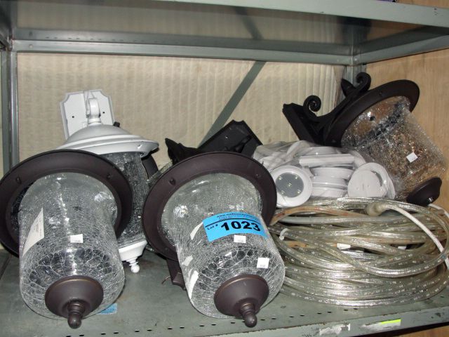 Shelf lot of assorted outdoor lighting