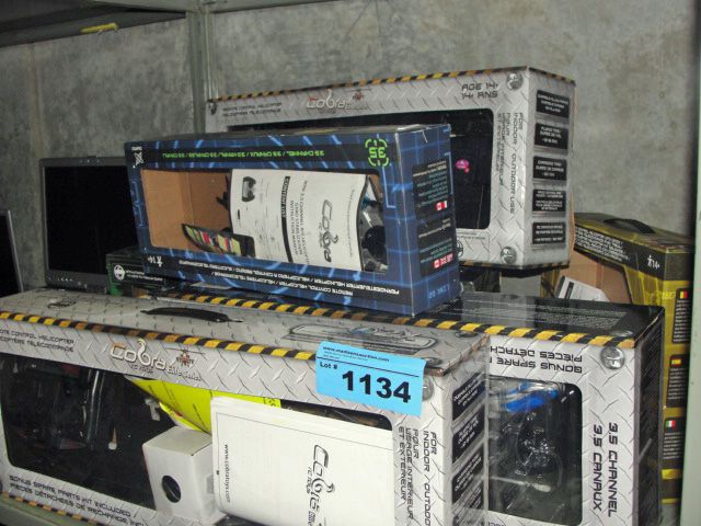 Shelf lot of assorted radio controlled helicopters