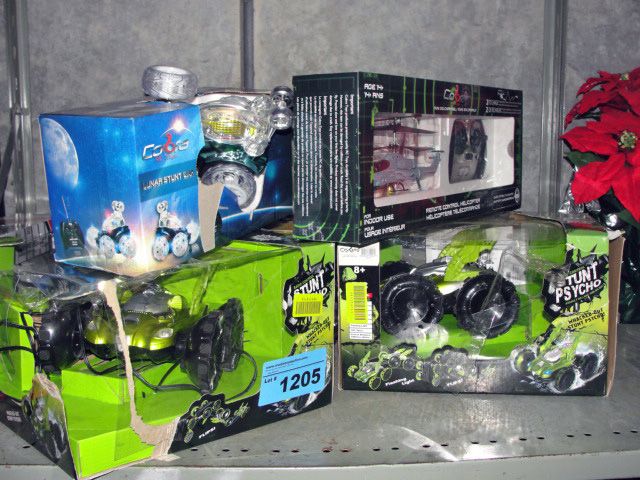 Shelf lot of assorted radio controlled toys