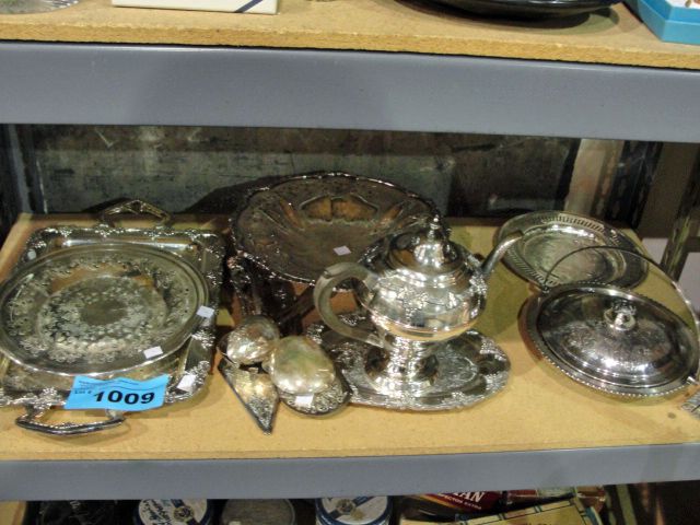 Shelf lot of assorted silver plate