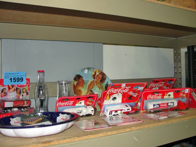 Shelf lot of coca cola collectables
