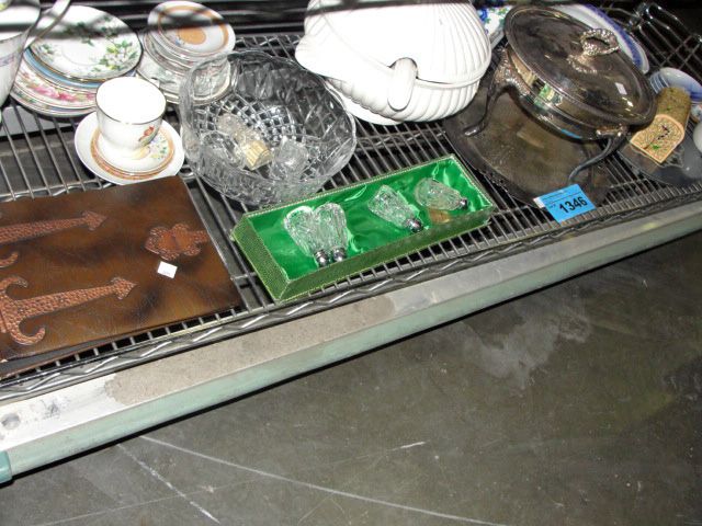 Shelf lot of collectables and dishes, etc