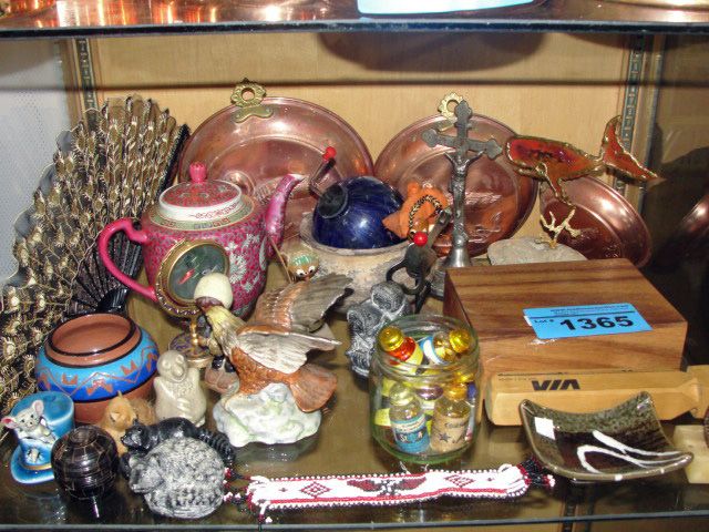 Shelf lot of collectables and household items