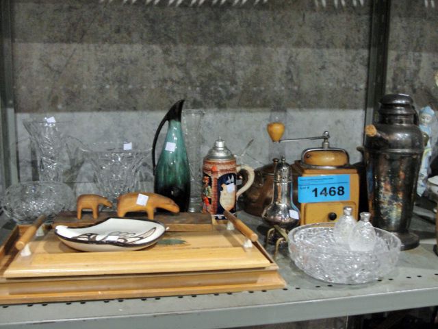 Shelf lot of collectables, glasswares, crystal