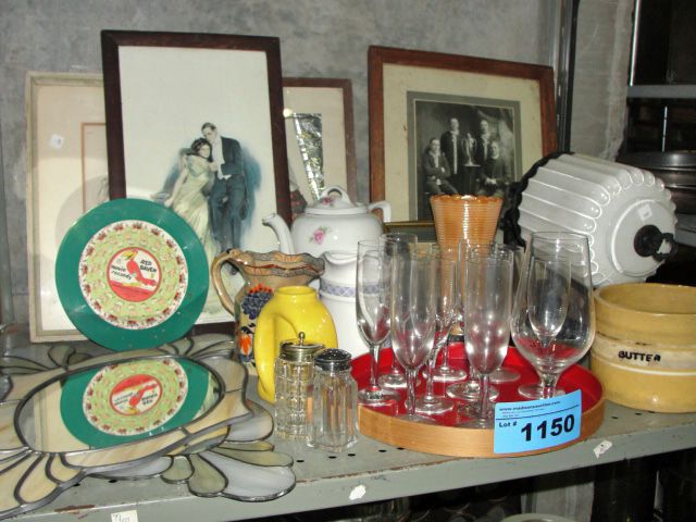 household items; vintage framed print, glasswares, etc