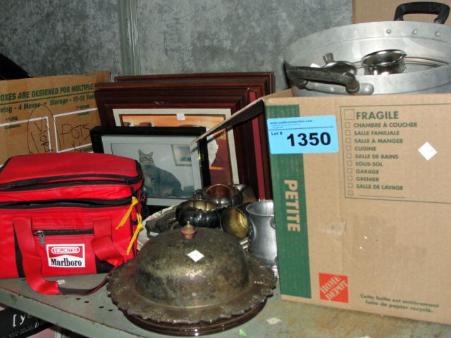 Shelf lot of general household items; silver plate