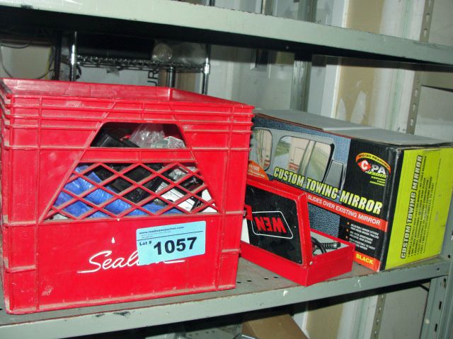 Shelf lot of hardware, custom towing mirrors, etc