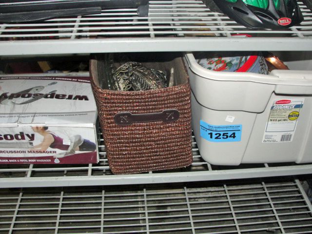 Shelf lot of misc items; rhapsody massager, books