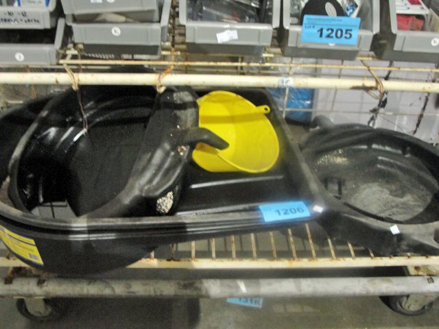 Shelf lot of motor oil changing tubes, funnels etc