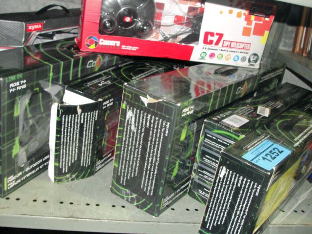 Shelf lot of radio control helicopters