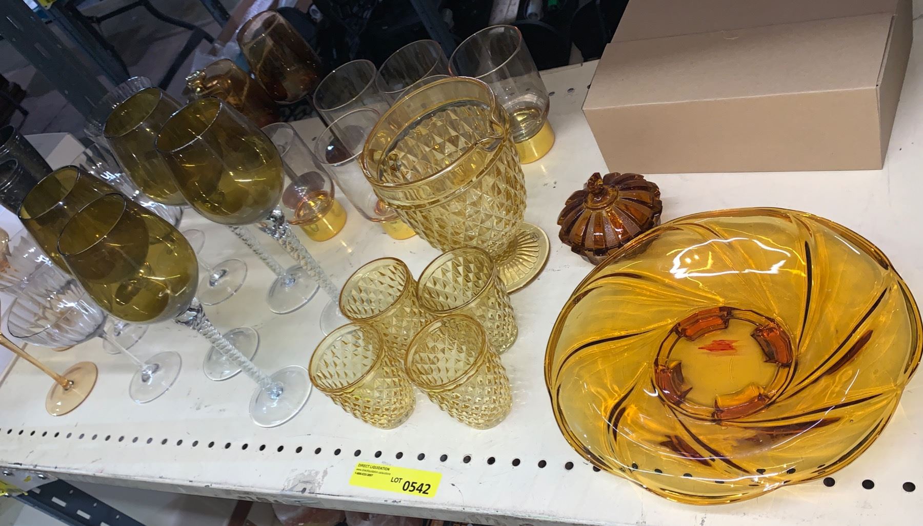 Shelf of Glass ware (Mostly Gold Colour)
