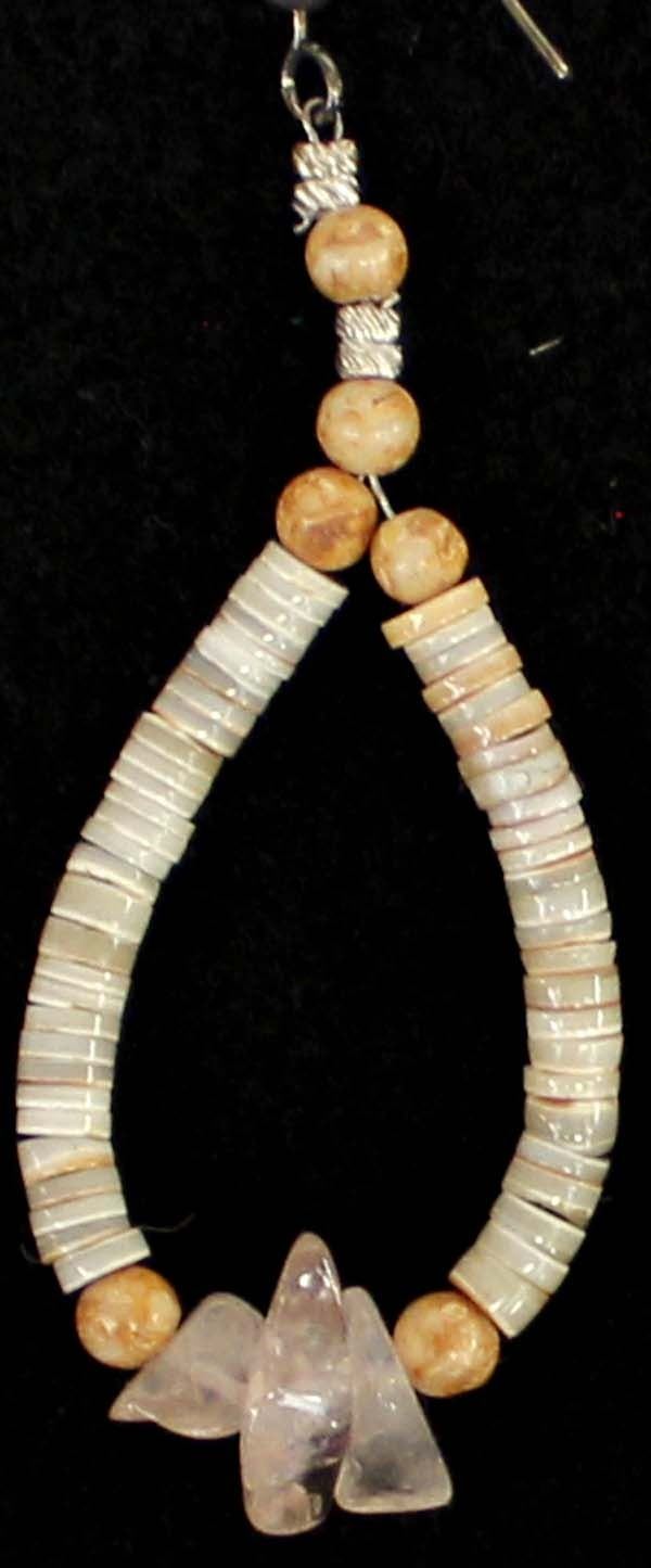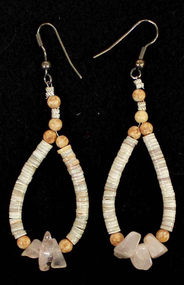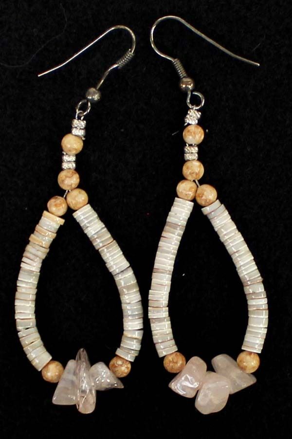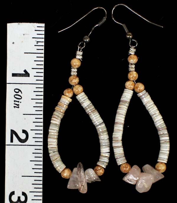 Shell Heishi, Jasper, and Quartz Earrings by Helen Gregory, measure 3''L which includes the wire x 1''