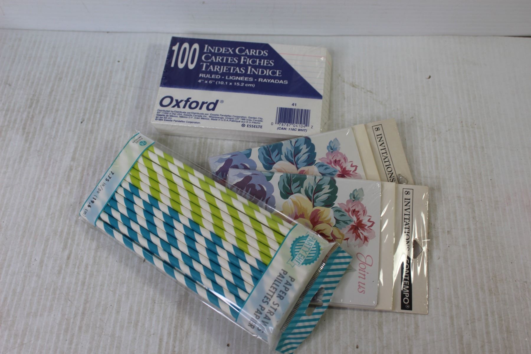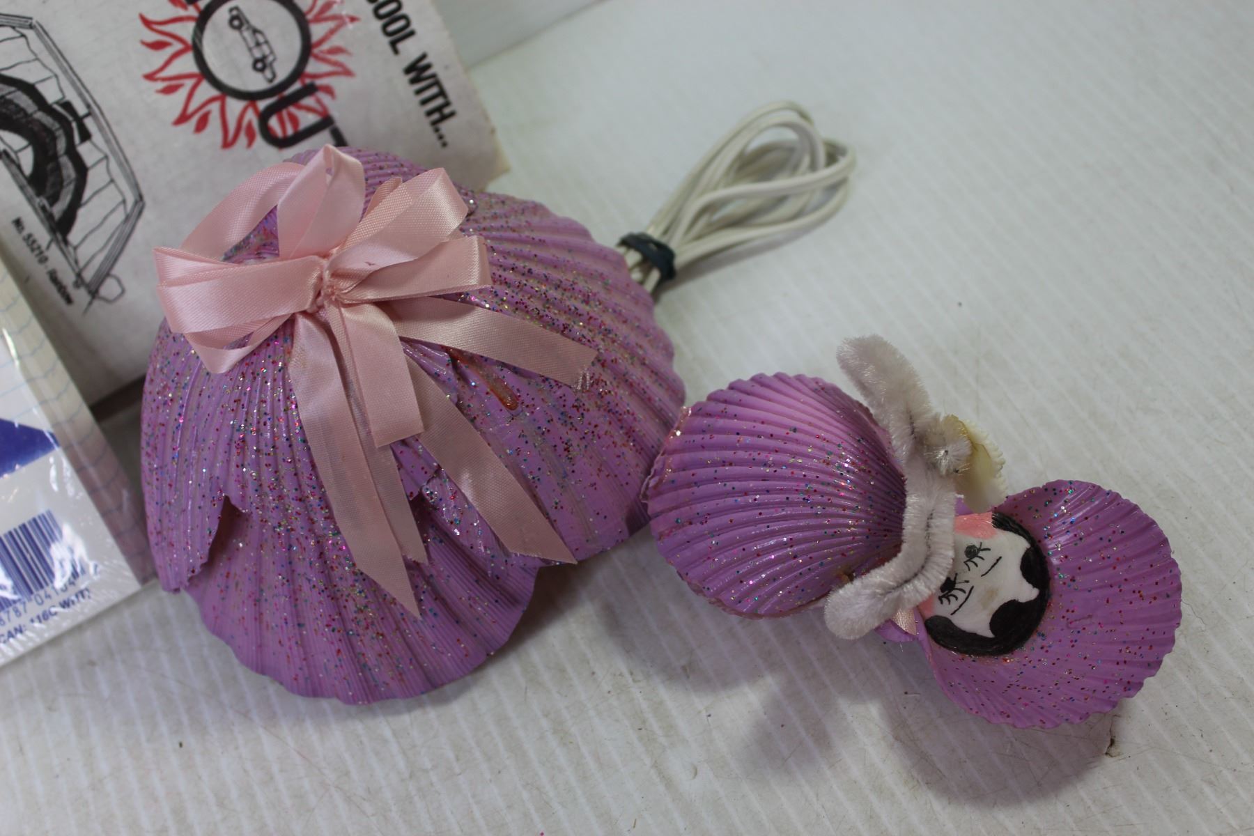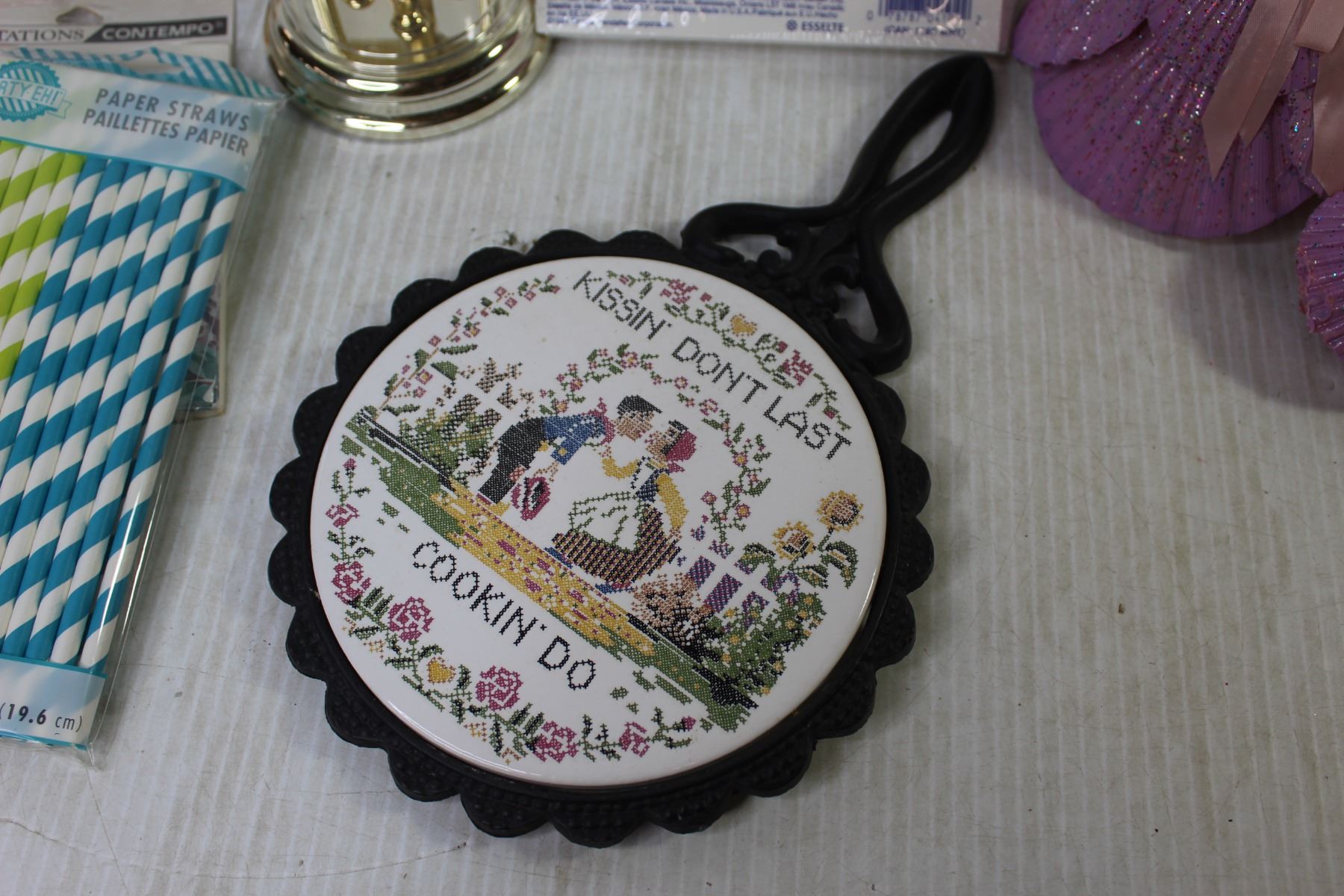 Shell Lamp (broken) - Trivet - Paper Straws - Clock - Index Cards - Invitations