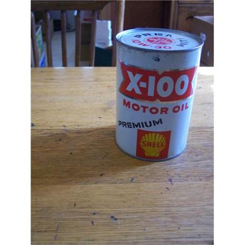 This is a full can of SHELL X-100 Motor Oil.Not sure what the age of this is but I would guess maybe 60s.