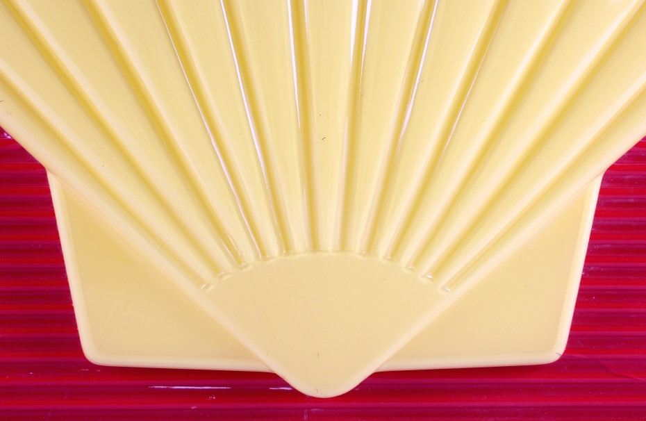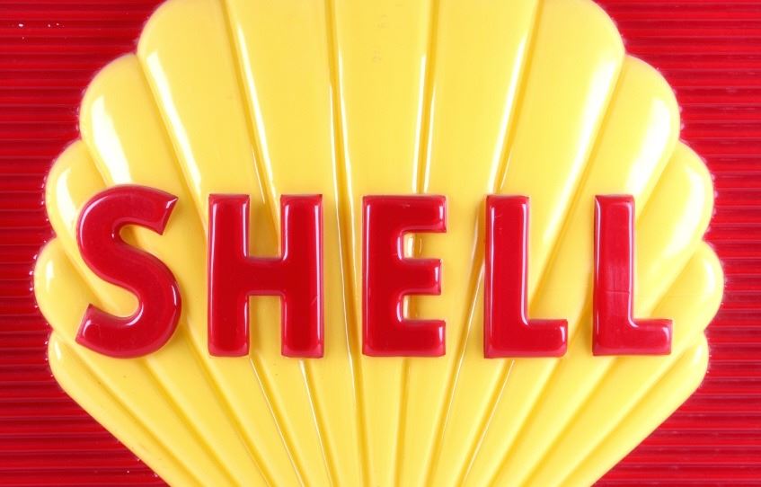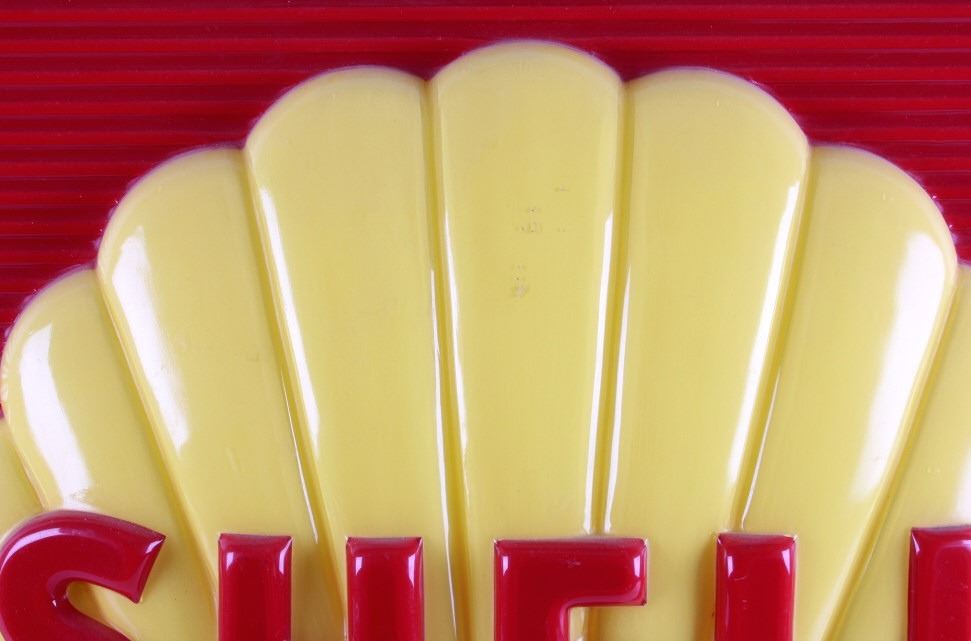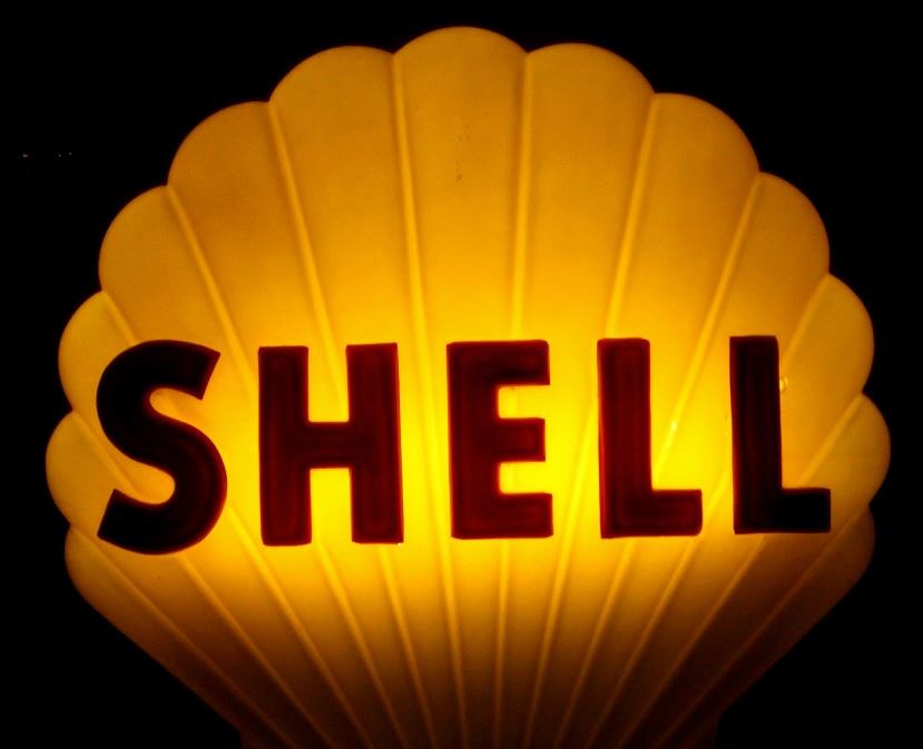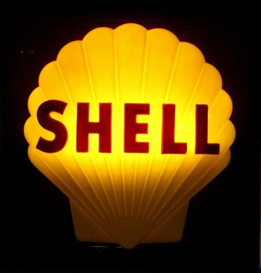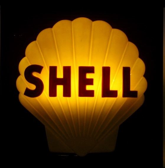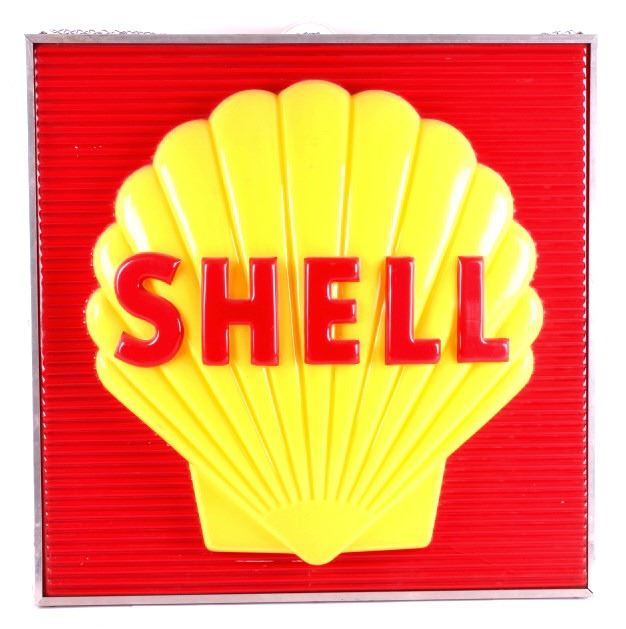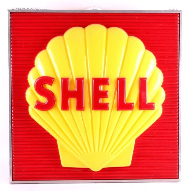 This is a Shell Oil lighted advertising sign. The sign shows the yellow seashell logo that reads "SHELL" in red lettering. The sign is backlit with a fluorescent light. The Shell Oil sign is in good condition. The sign has been tested and is in good working condition. The sign measures 25" x 25".