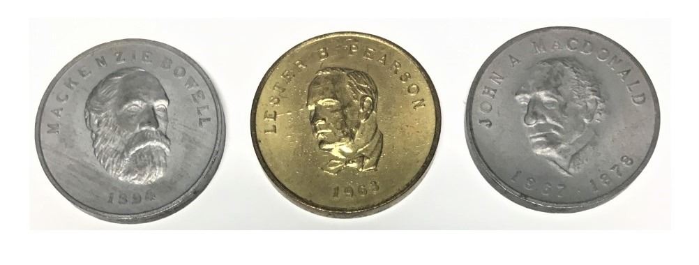 2) 1963 - Lester B Pearson (Still has brass. Most of these tokens have lost the brass and only have zinc.)