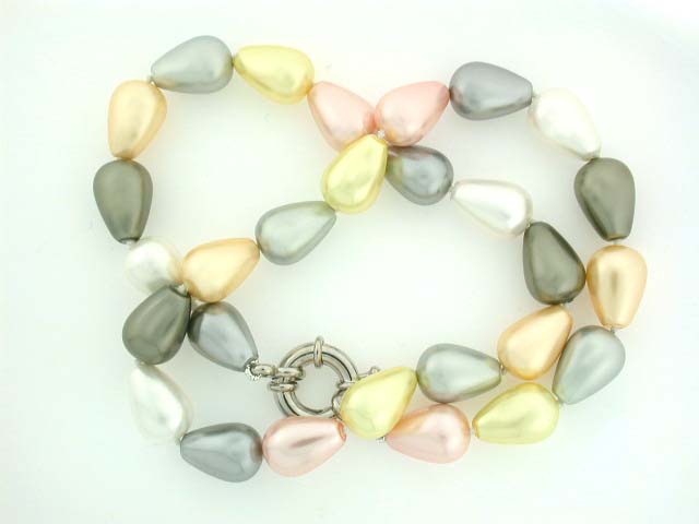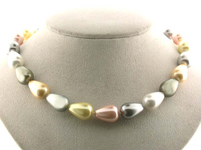 Pearl Necklace. The necklace has Drop Shell Pearls with Silver Clasp. Its Length - approximately 17.5 inches long.