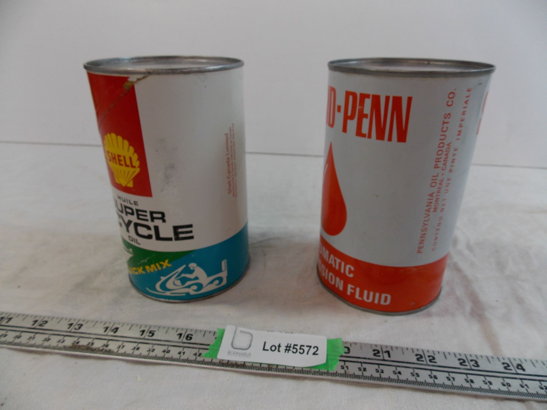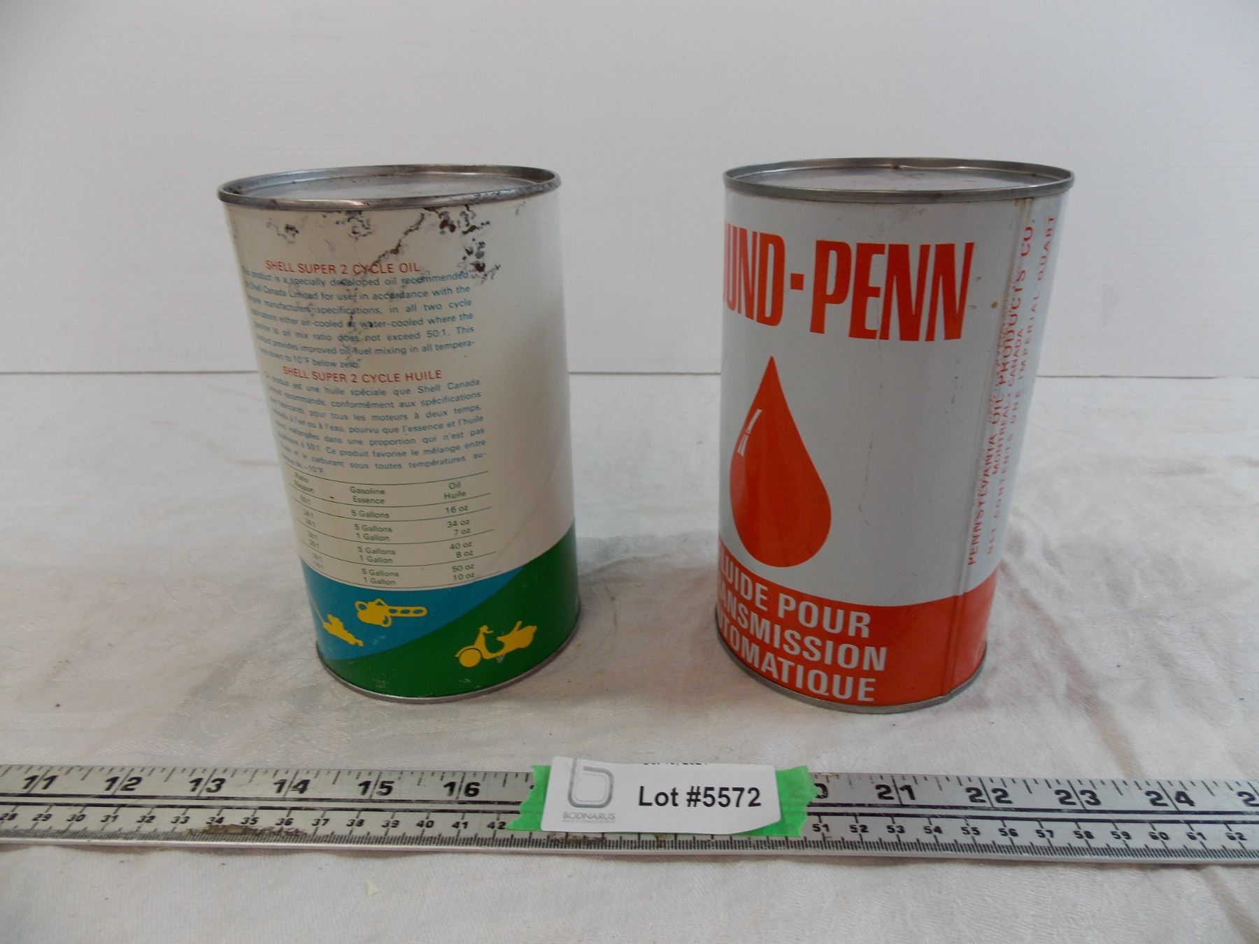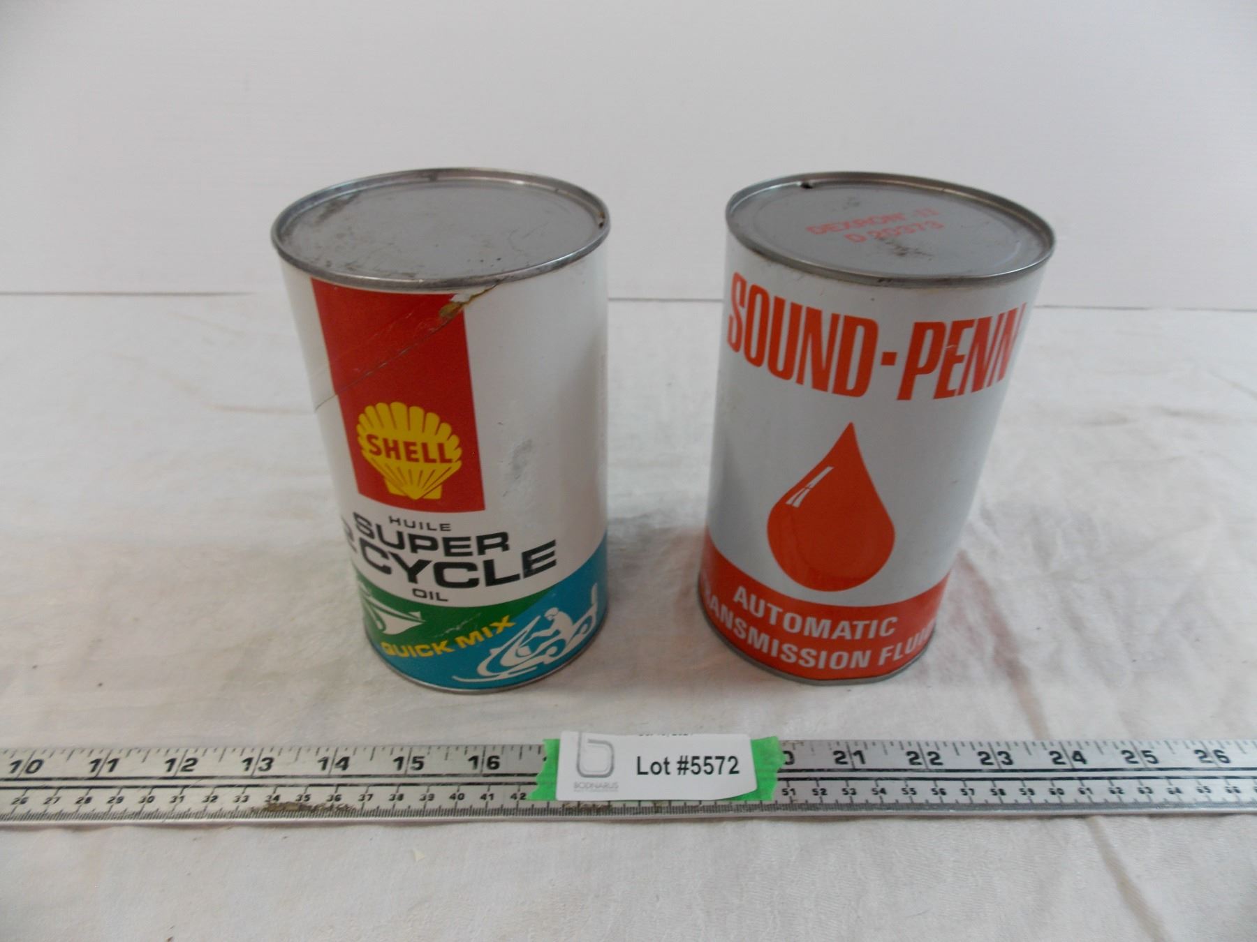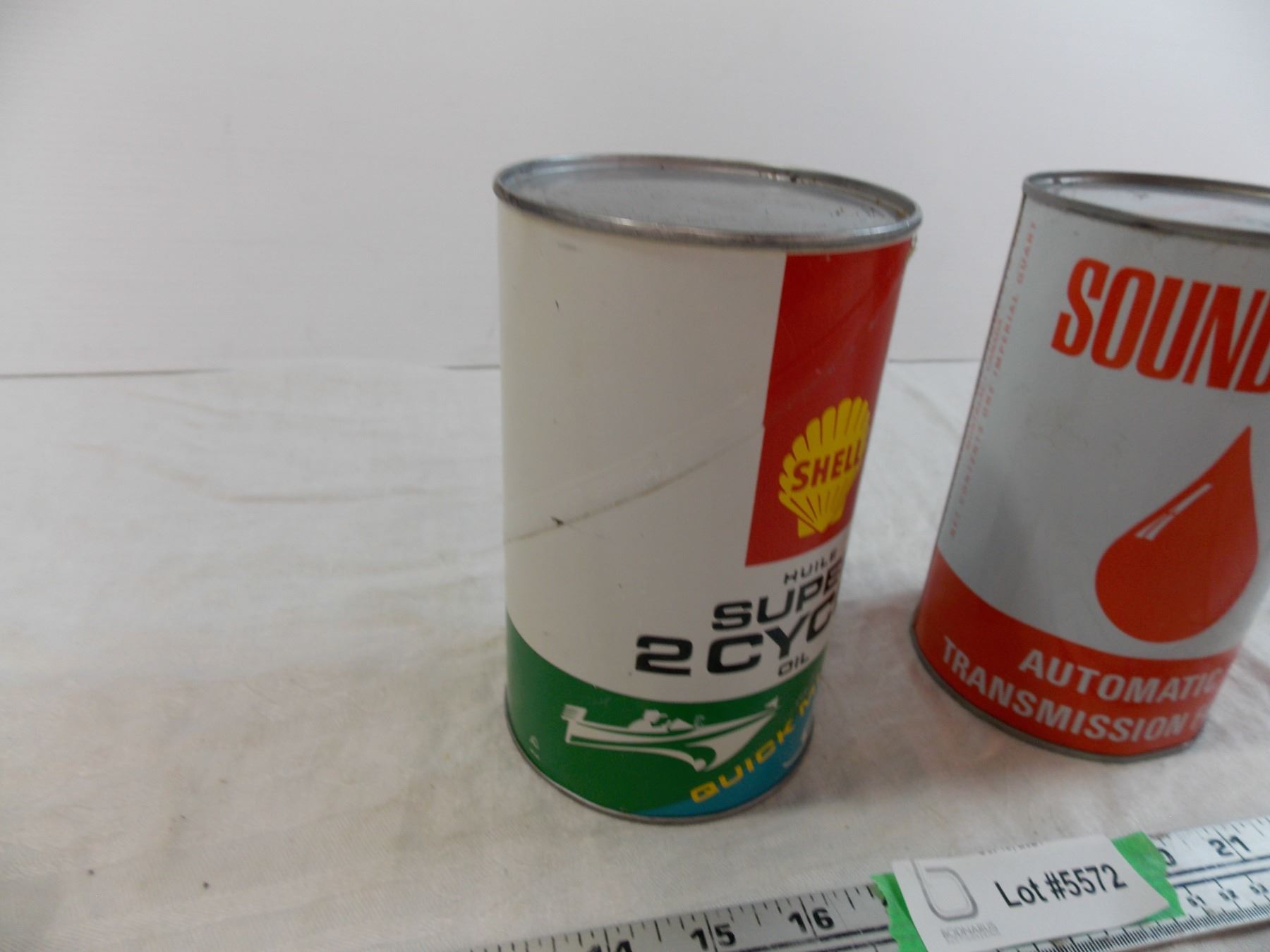 Shell Super Cycle Oil cardboard can (Full) + Sound Penn ATF tin (empty)