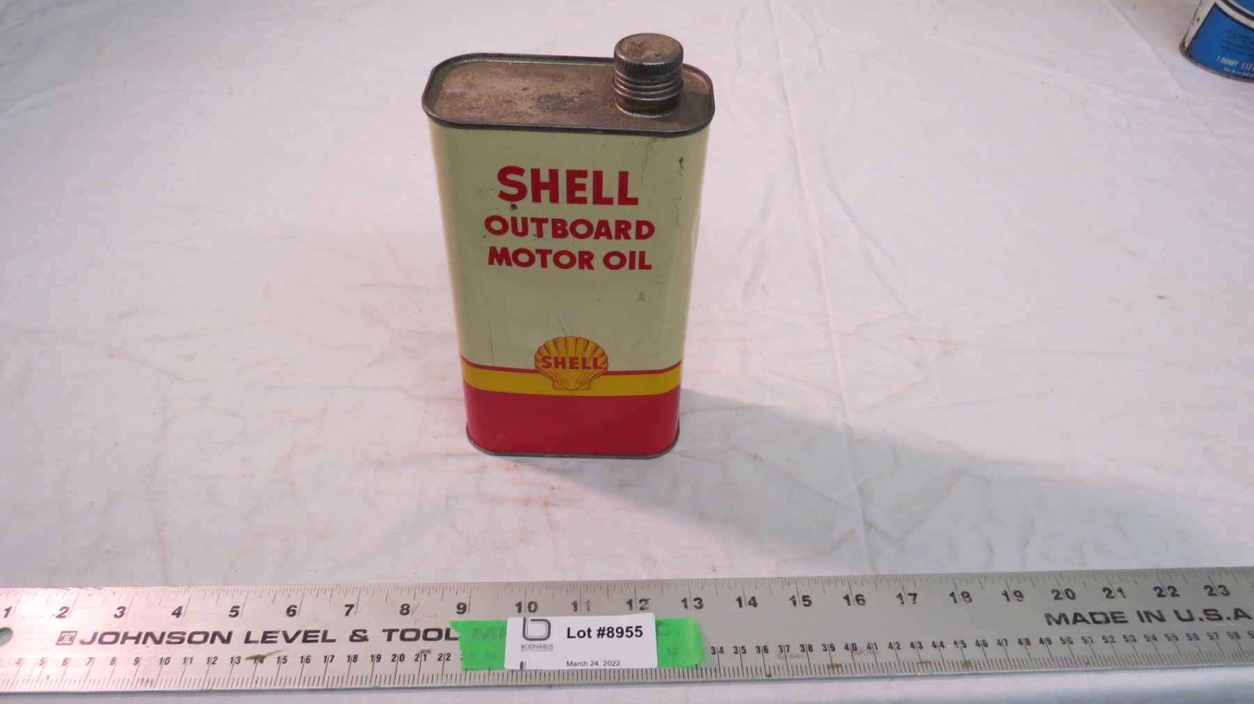 Shell out board motor oil tin
