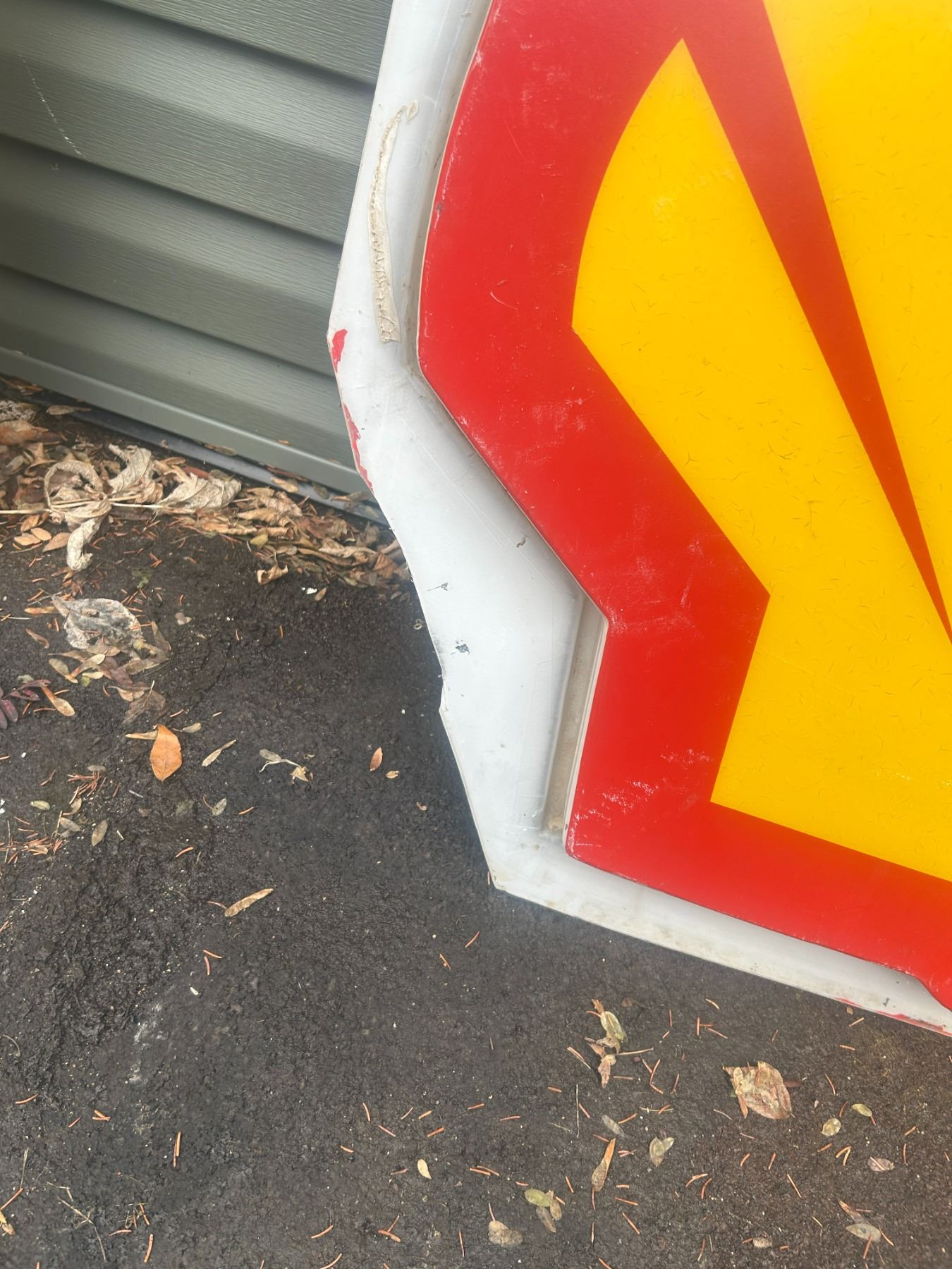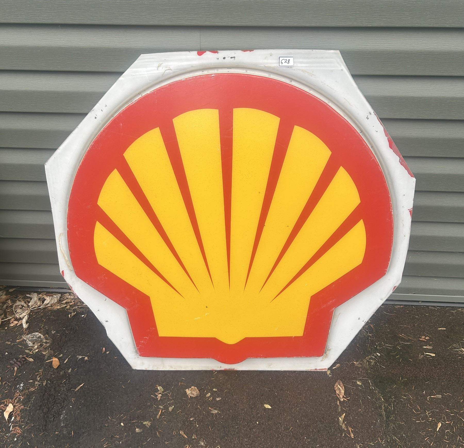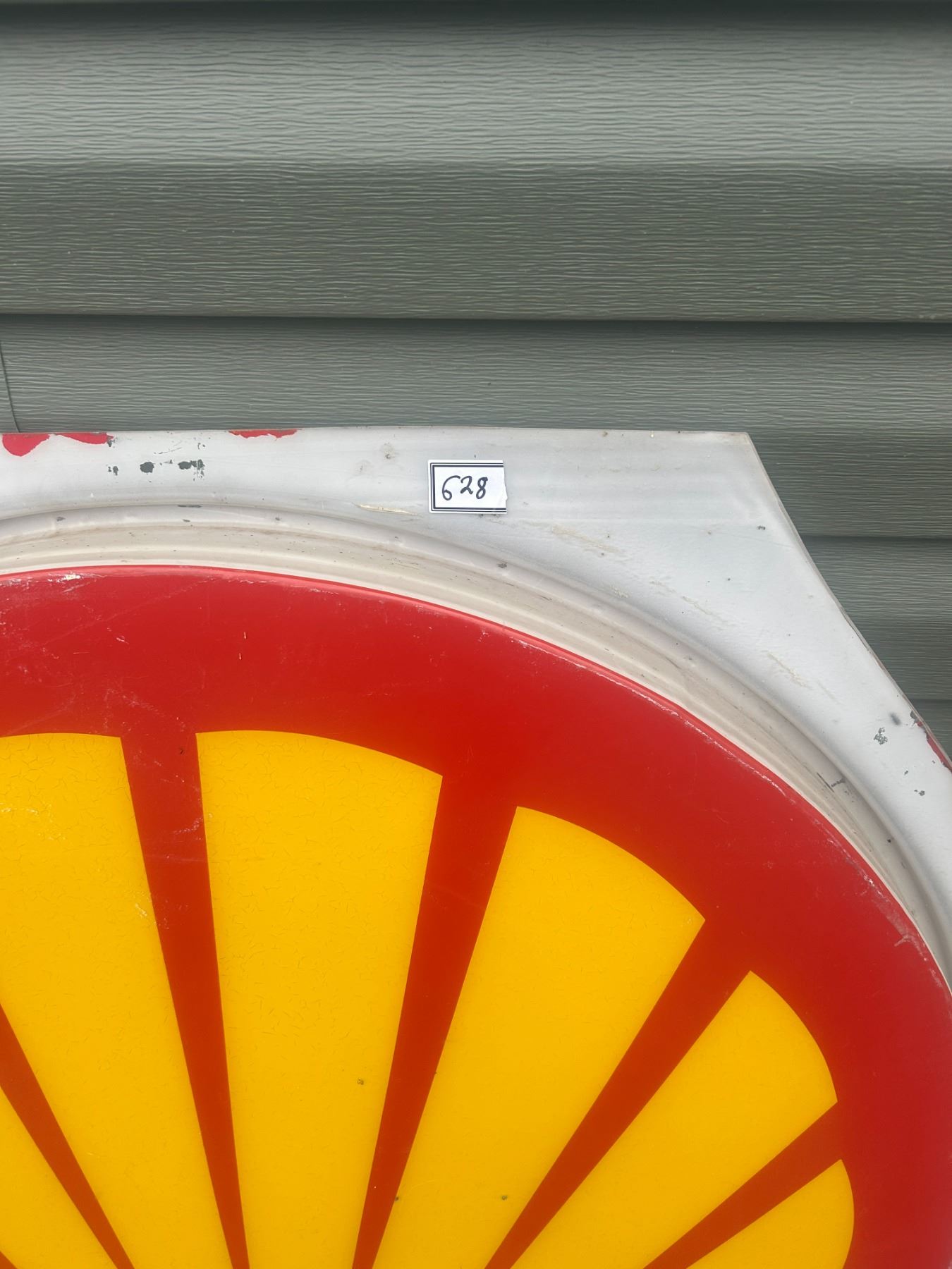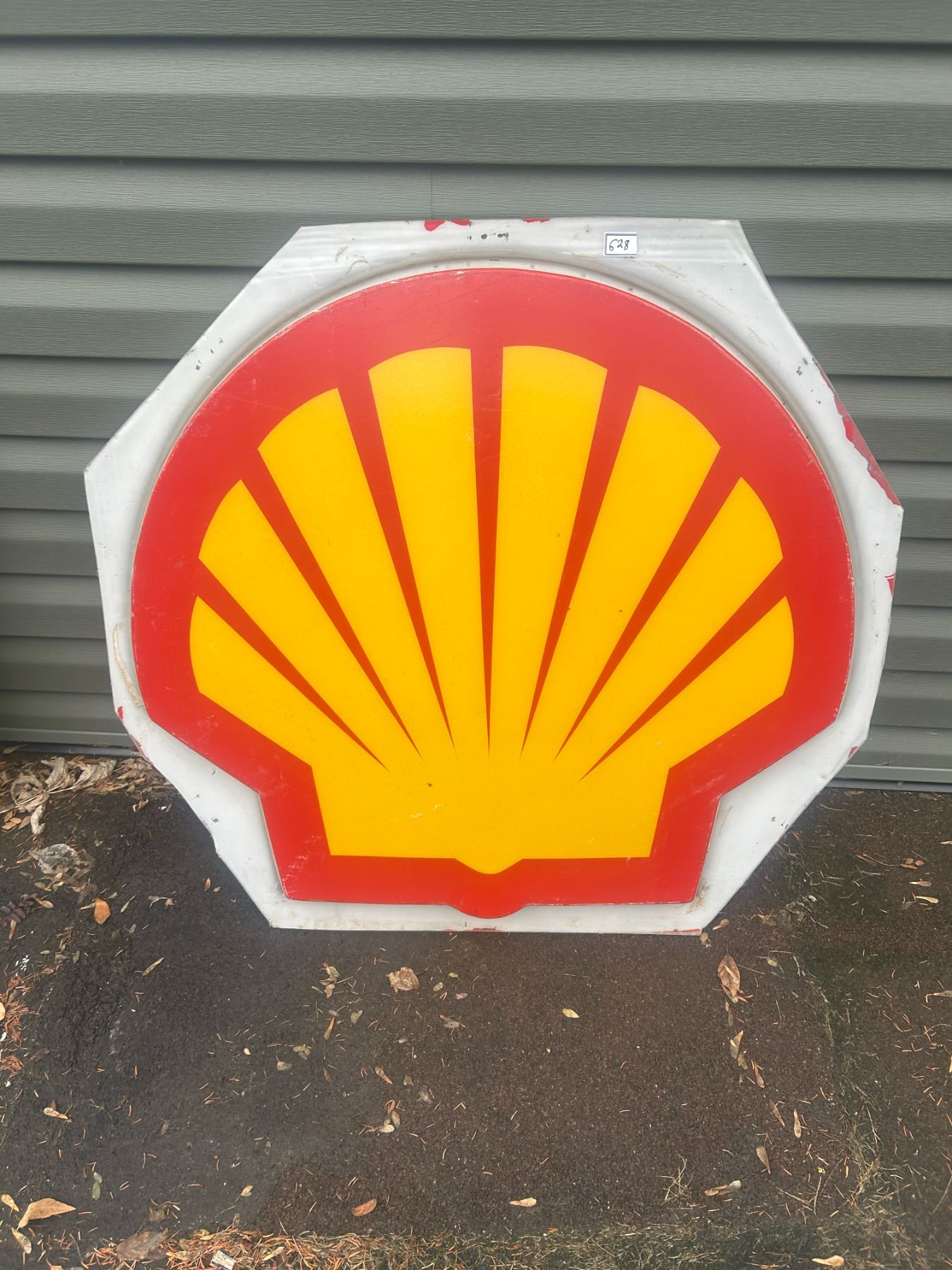 Shell plastic sign - 37"H x 39"W, damage on bottom left