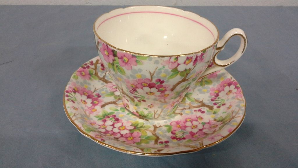 Shelley Bone China Cup and Saucer (Maytime Pattern)