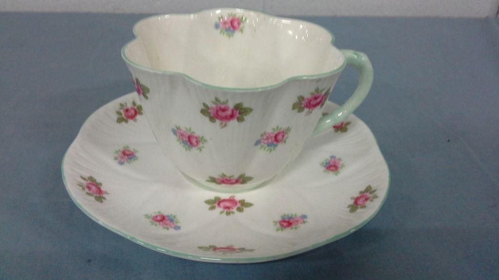 Shelley Bone China Cup and Saucer (Rosebud Pattern)