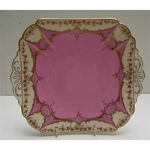 Beautiful and Elegant Shelley Cake Plate "hard kiln pink on body, ivory above festons, gold print pattern
