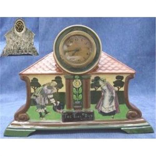 Shelley Foley Intarsio Ware Manrel Clock The Time O Day Decorated With Figures Shape Number 3330 Registration Number 379153 c1903