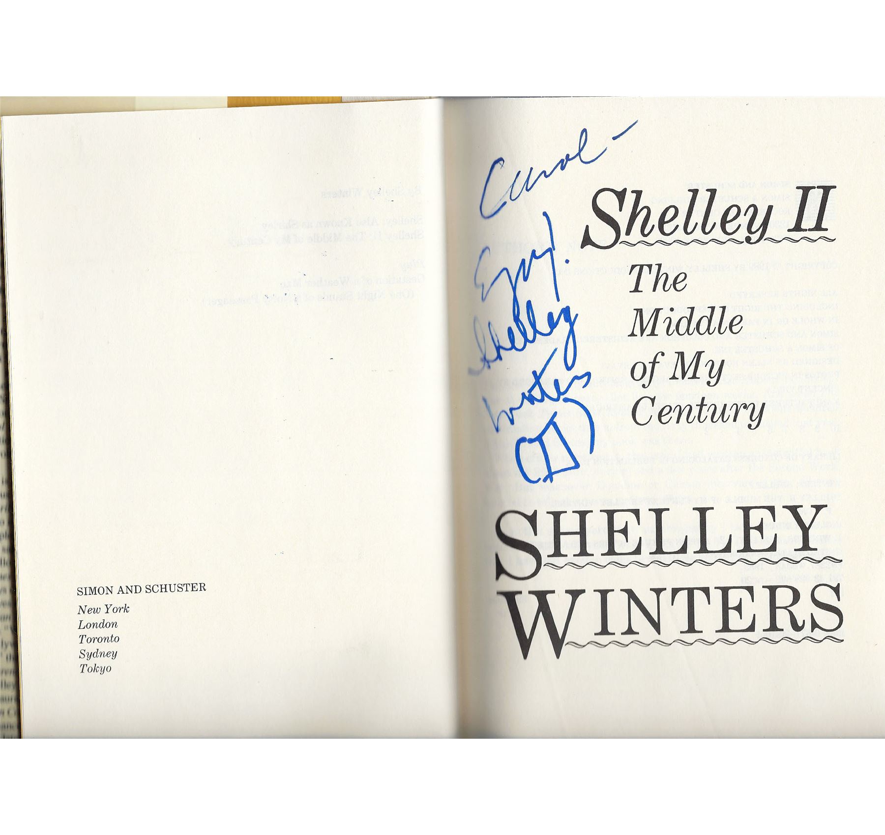 Shelley II: The Middle of my Century signed book autographed by Shelley Winters