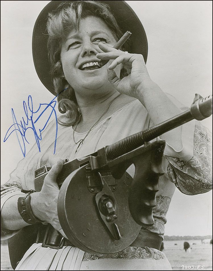 Terrific glossy 7 x 9 publicity photo of Winters from Bloody Mama, signed in blue felt tip. In fine condition, with trimmed edges and slightly irregular ink adhesion to the signature.